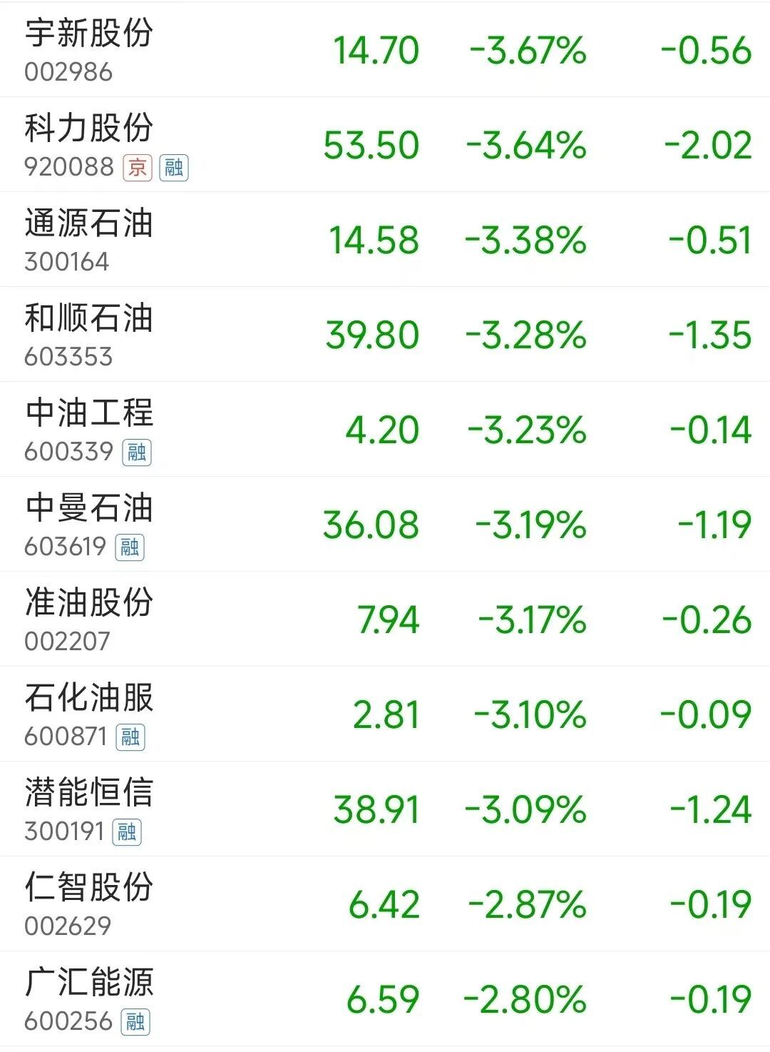 下落方面,油气股集体退换,山东墨龙、石化油服、中曼石油均下挫。