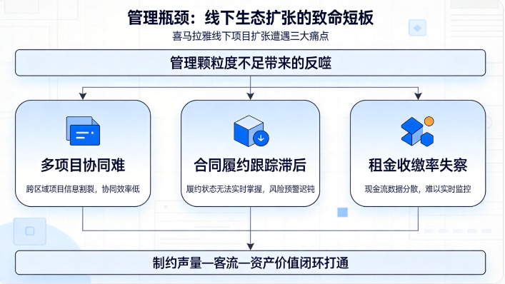 跟着喜马拉雅线下生态(如喜马小镇、喜马六合等)的铺开,神色方狰狞地察觉到了经管颗粒度不及带来的反噬:多神色协同难、左券践约情状追踪滞后、房钱收缴率难以实时掌控。这些看似基础的租借经管痛点,恰是制约“声量—客流—钞票价值”闭环买通的致命短板。