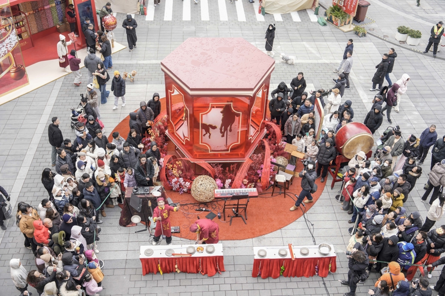 2月7日下昼一场创意交融非物资文化遗产与当代饰演艺术的音乐会——「非遗新声喜乐会」在公园巷街区十字街头呈现。二胡、琵琶、马头琴、笛子、唢呐等传统乐器与钢琴、大提琴、键盘等当代乐器精彩碰撞,带来《云宫巡音》《游园惊梦》《Love Story》《青花瓷》《当》等耳濡目染的国风乐曲,激励全场大齐唱,现场氛围插手完满。