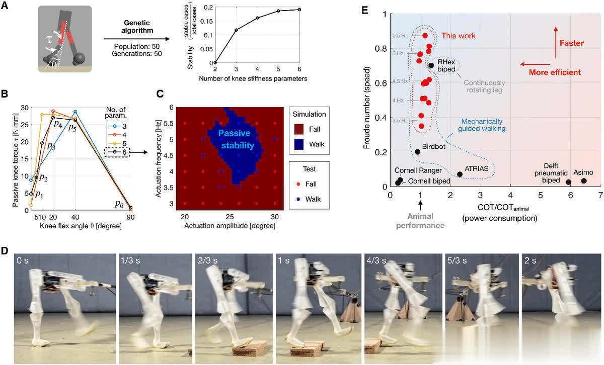 目下,让我们望望 ERC 在双足机器东谈主上的精彩进展。传统双足机器东谈主安详性差、适合性弱,就像刚学步碾儿的小一又友,幸运飞艇app容易跌倒。但装上 ERC 膝盖关节后,一切王人不相同啦!通过遗传算法优化膝盖的刚度参数,机器东谈主能在多样复杂情况下安详行走,岂论是不同频率和幅度的运行,已经非凡台阶,王人不在话下。何况,它的能量恶果超高,接近动物水平,行走速率还能通过治愈髋关节运行频率来扫尾,就像给机器东谈主装上了智能大脑。