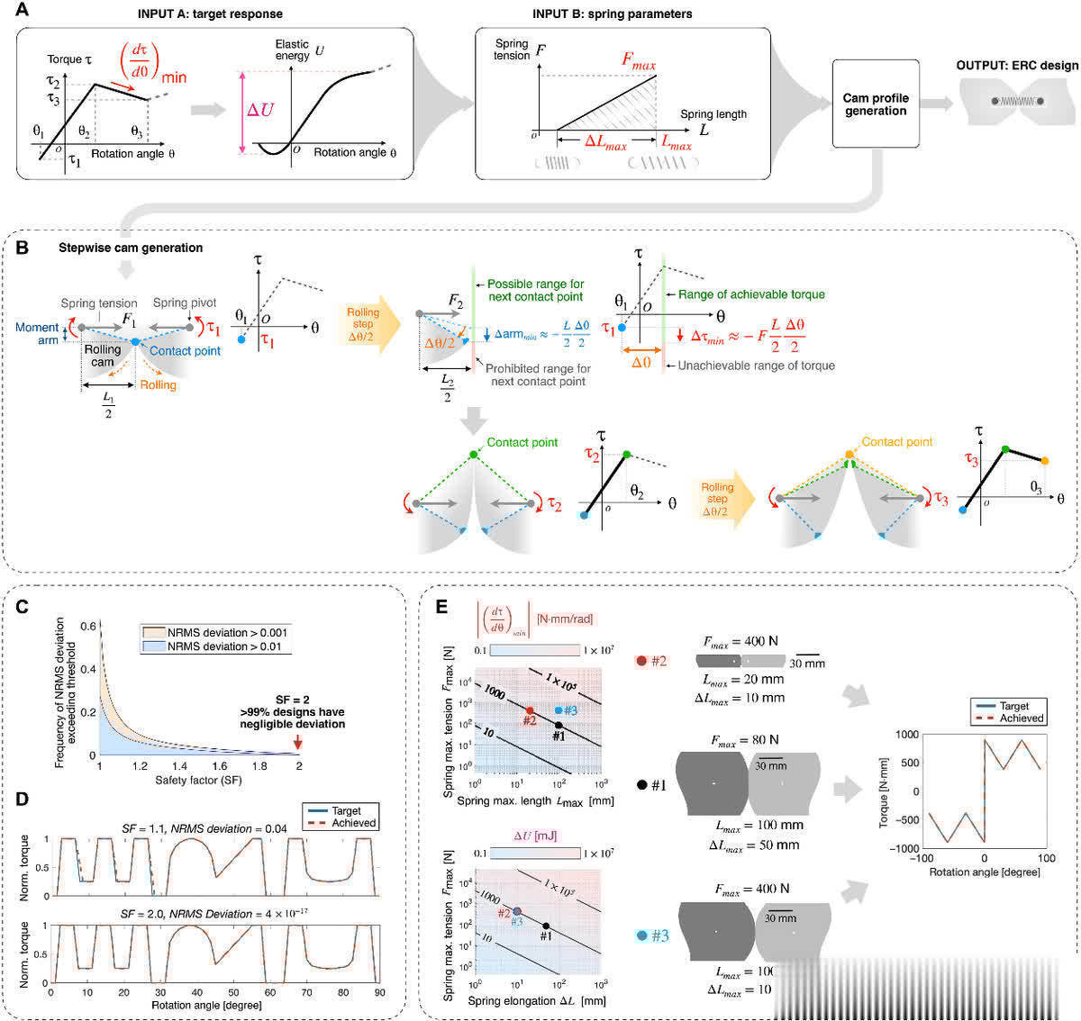 我们先来望望ERC是怎么责任的。它由一双带弹簧的凸轮构成,互相更正扫尾动掸。在动掸进程中,凸轮的特殊步地会改变弹簧的长度和力臂,让弹簧存储的弹性能量发生变化,最终产生不同的动掸刚度反应。简单来说,它能凭证缱绻,像变魔术相同提供多样奇特的刚度变化,为机器东谈主畅通打下基础。