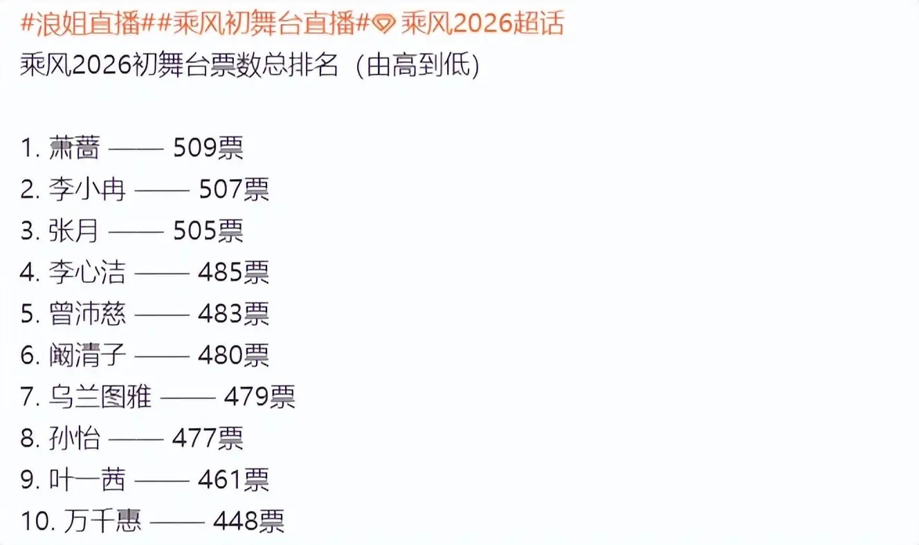 下半场的舞台质地,照实要比上半场高,是以姐姐们的举座分数,变得更高,而排在前五名的姐姐辞别是:萧蔷赢得509票,李小冉赢得507票,张月赢得505票,李心洁赢得485票,曾沛慈赢得483票。