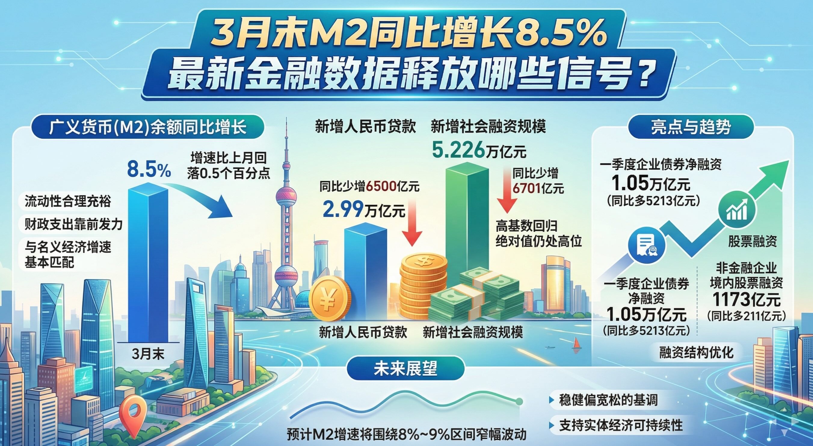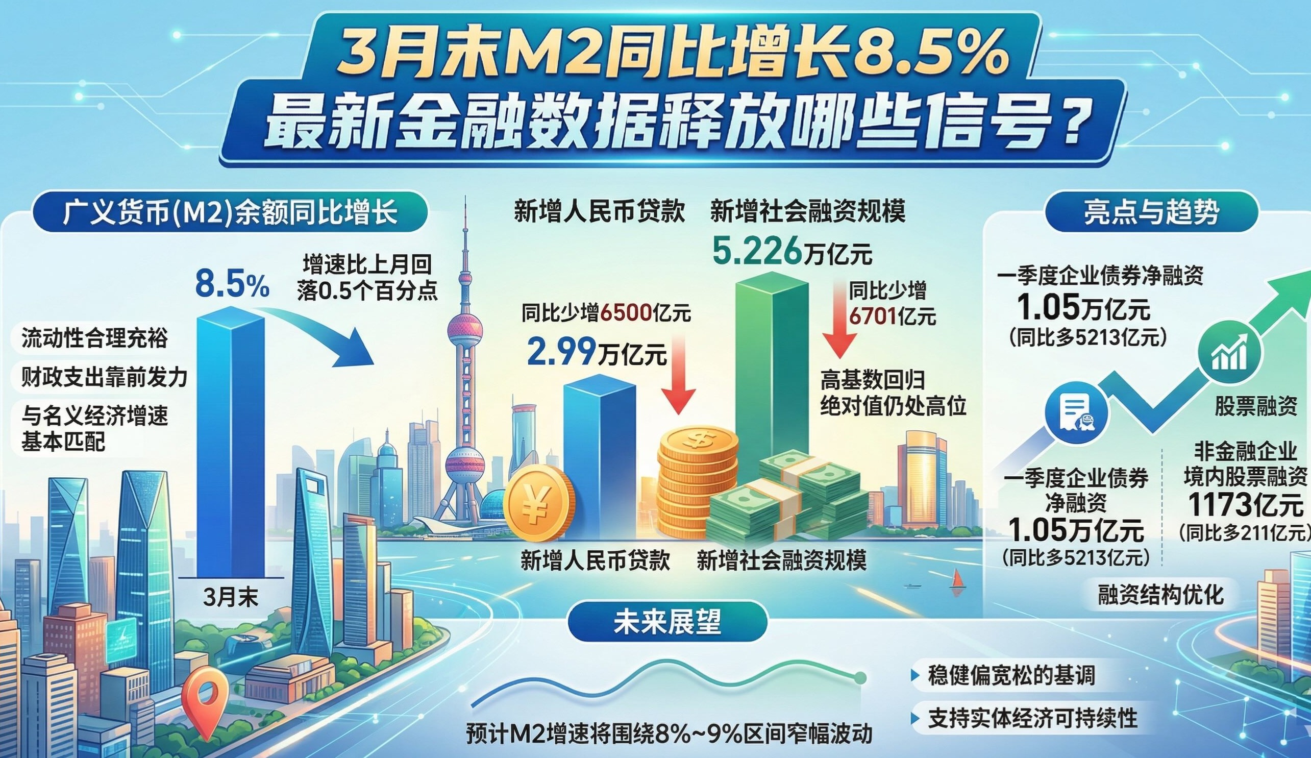 《中国筹商报》记者珍摄到,3月末M2同比增速为8.5%,不时处于较高水平,是本月金融数据中的一大亮点。