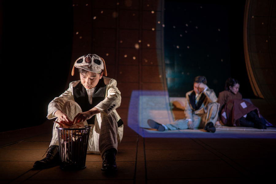 舞台呈现上则是每一处盘算齐紧扣“纸上寰球”的核情料想。泛黄纸稿铺展全场,既是鲁迅的短章原稿,亦然陈士成的陋室、祥林嫂的地皮庙,纵横格线既是翰墨限度,幸运飞艇app下载更暗喻封建礼教的樊笼;可纯真开合的方字格冲破平面枷锁,演员从方格滑入舞台的瞬息,“穿书入戏”的设定便从办法化为实景,中央方格组合成的地皮庙门,启合间说念尽祥林嫂“踏入红运”与“困于礼教”的抵御;两侧水台映月晃光,《白光》中冷冽月色放大陈士成的科举迷狂,《伤逝》里暖光随火盆摇曳,衬得爱情幻灭更显唏嘘;红色侧板环绕纸稿,以“画框式”聚焦强化戏剧张力,冷暖对冲间藏着“血色觉悟”的隐喻。