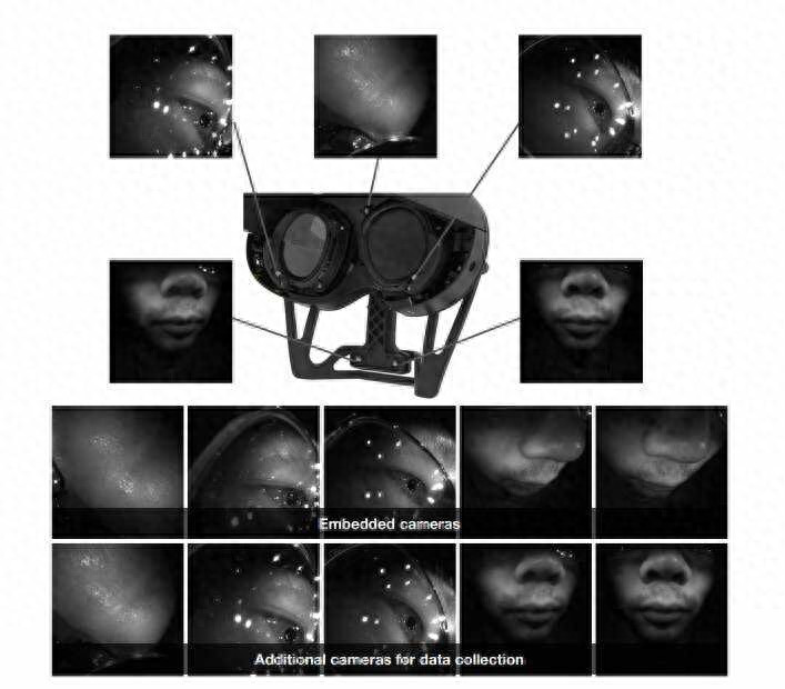 Meta的探讨旨在贬责这一勤勉。团队劝诱了一套基于红外录像头的及时面部色彩跟踪系统,只需将5个录像头镶嵌VR头显,就能精确拿获用户的面部动作,并启动假造化身作念出相应的色彩。