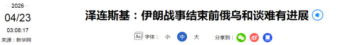 泽连斯基:伊朗战事扬弃前俄乌和谈难有露出