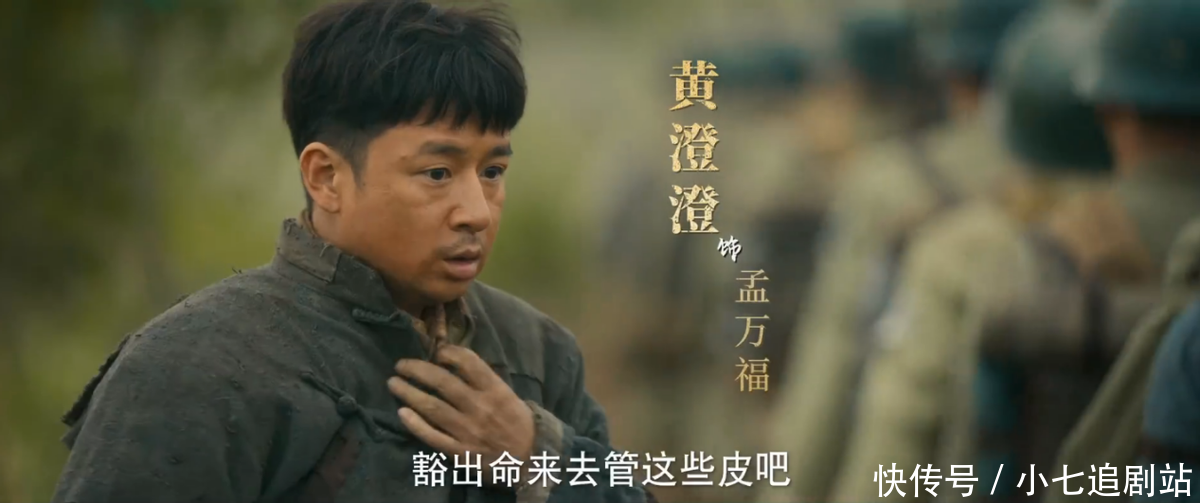 黄澄澄扮演的孟万福,蓝本是个心虚怕事的伙夫,在戎行里一心想着怎样保命。可当张云魁临终托孤,寄予他护理一家长幼。
