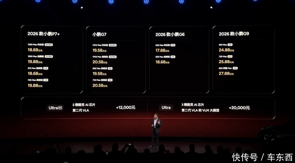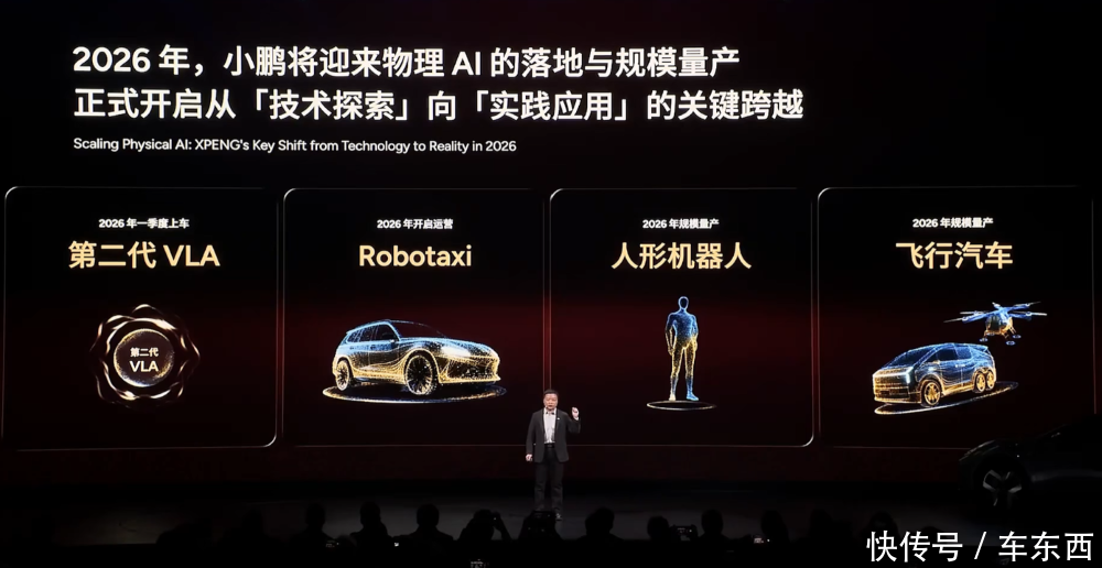 车东西1月10日音信,日前,小鹏汽车董事长、CEO何小鹏在小鹏汽车2026年首场发布会现场,发布了四款车型。